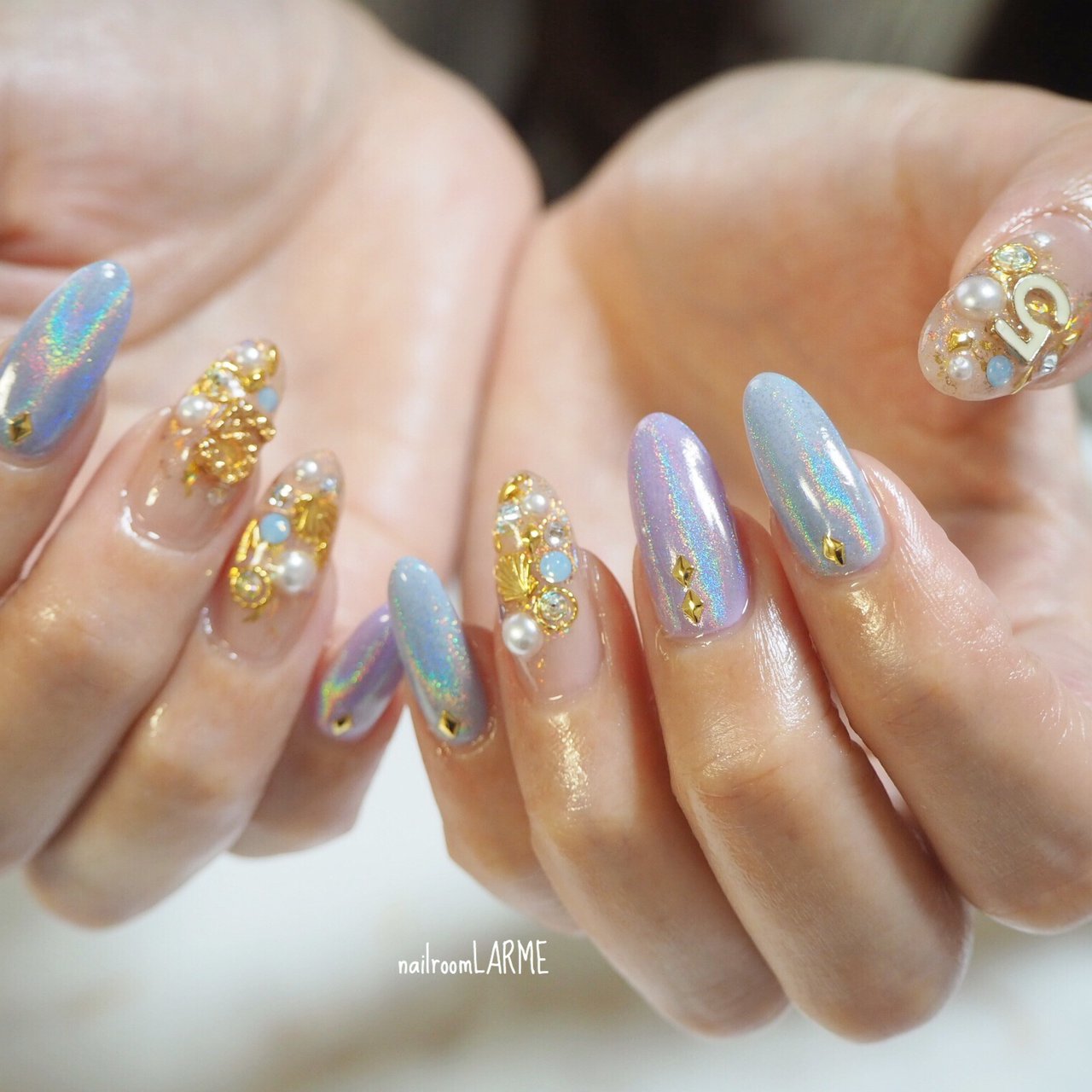 夏 ハンド 水色 パープル ゴールド Nailroomlarmeのネイルデザイン No ネイルブック